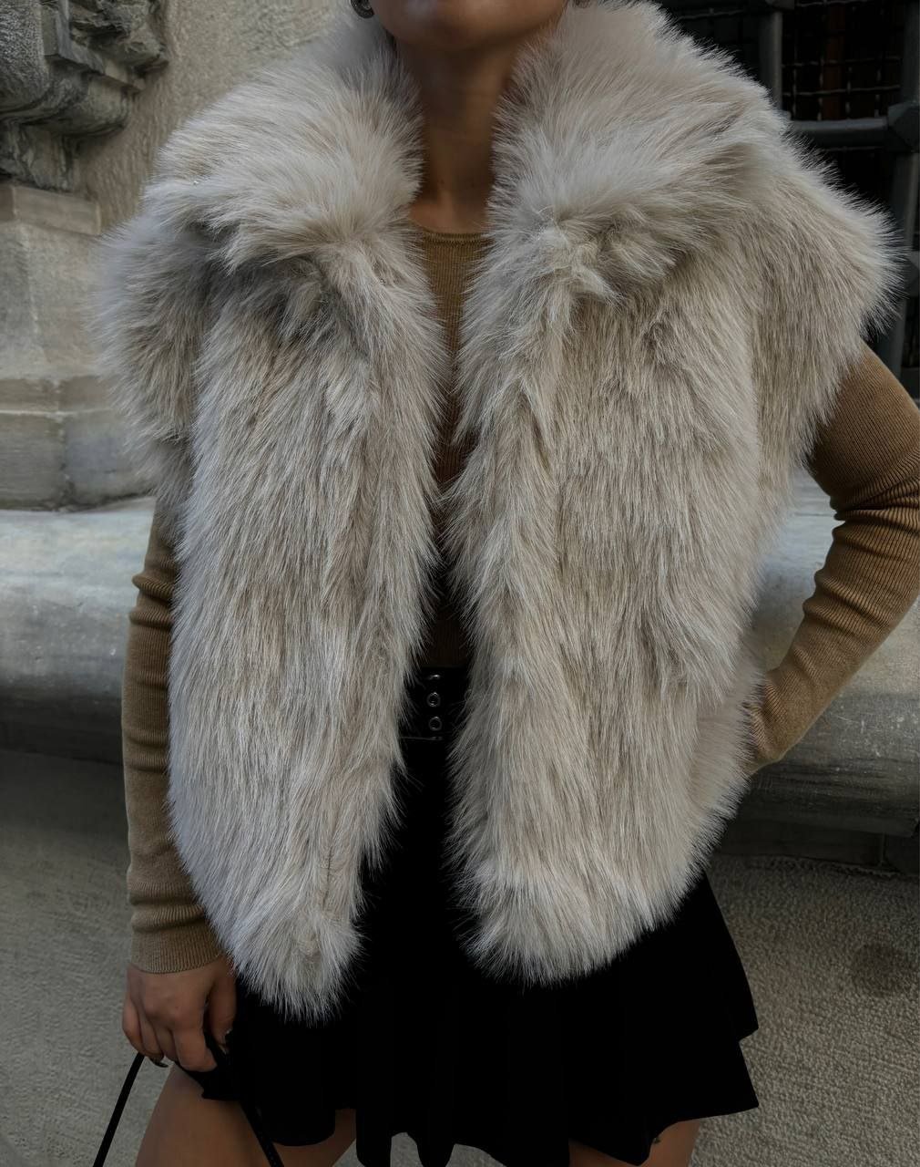 Мек и много топъл модел съставен от висок клас еко косъм. Има опция за закопчаване. Подходящ за студените зимни дни.
