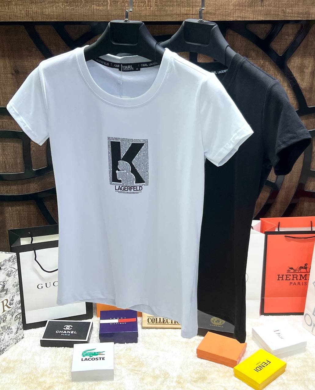 Karl Lagerfeld дамска тениска, съчетаваща изчистен силует и модерен минимализъм. Моделът е изработен от 100% висококачествен памук, който осигурява мекота, комфорт и отлична дишаемост през целия ден.