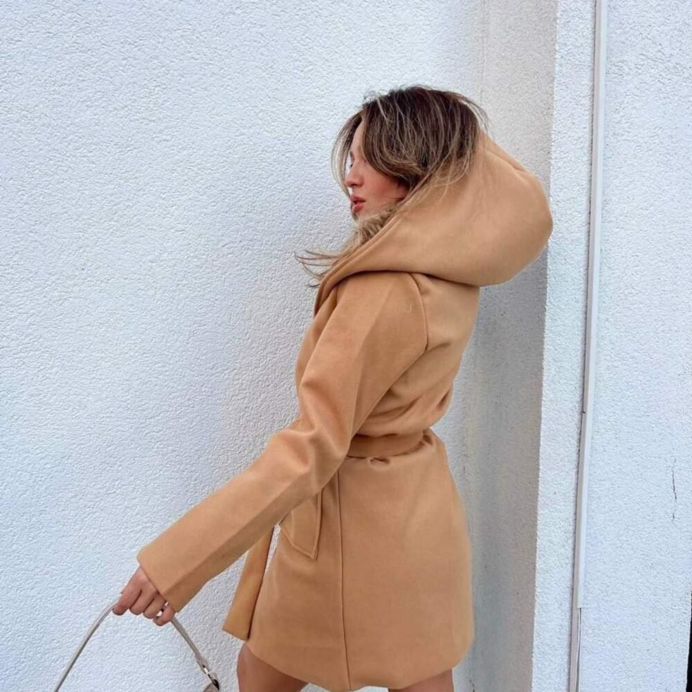 Дамско палто с коланче в два цвята