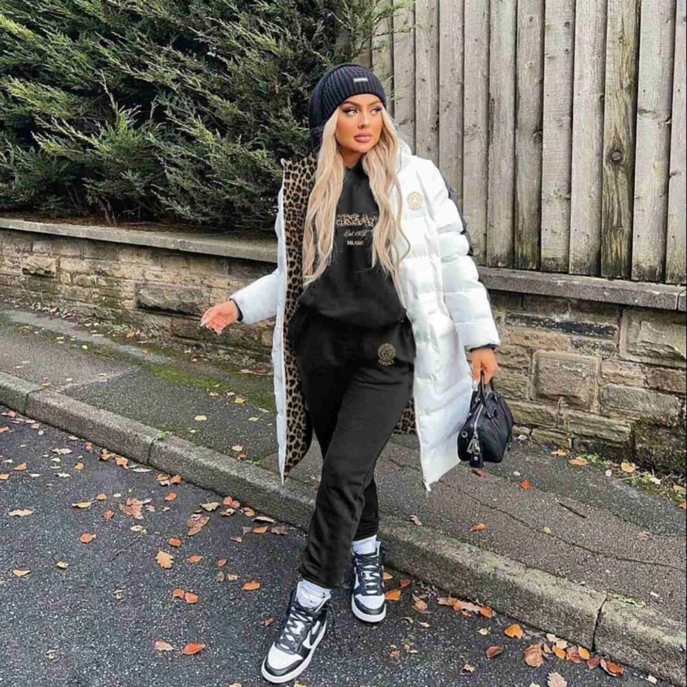 черен екип с бяло яке